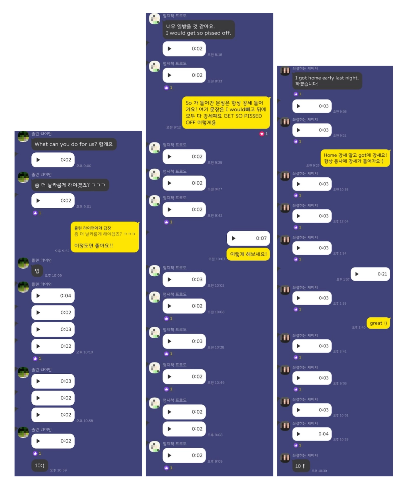 하루에 최소 10번 녹음해야 합니다.