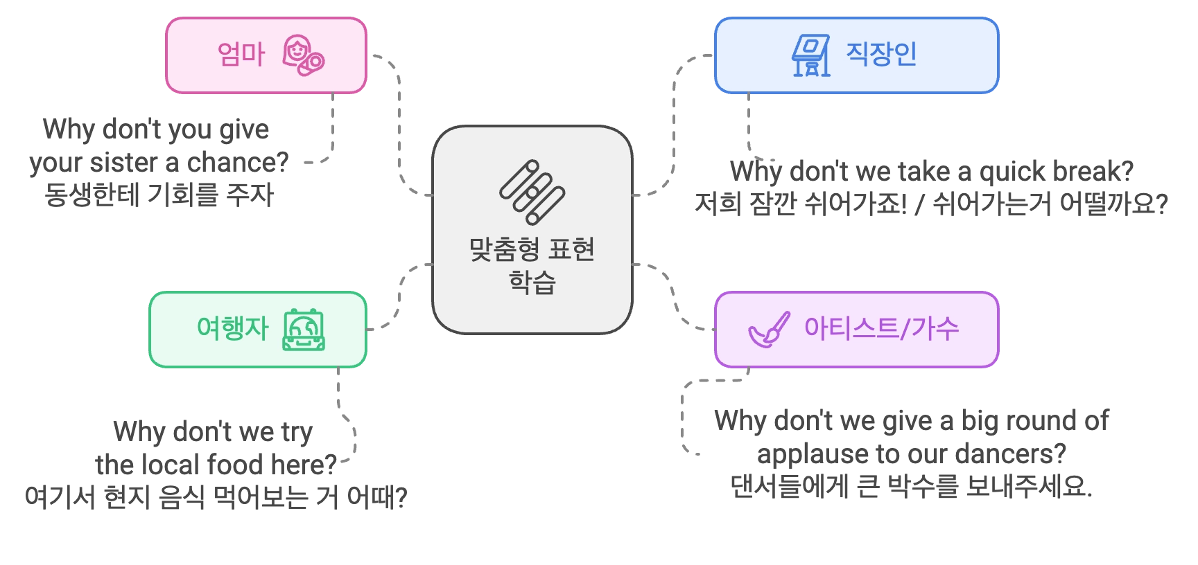 ‘내가 실제로 쓰는 한국어랑 영어 표현 연결 시켜주기’
